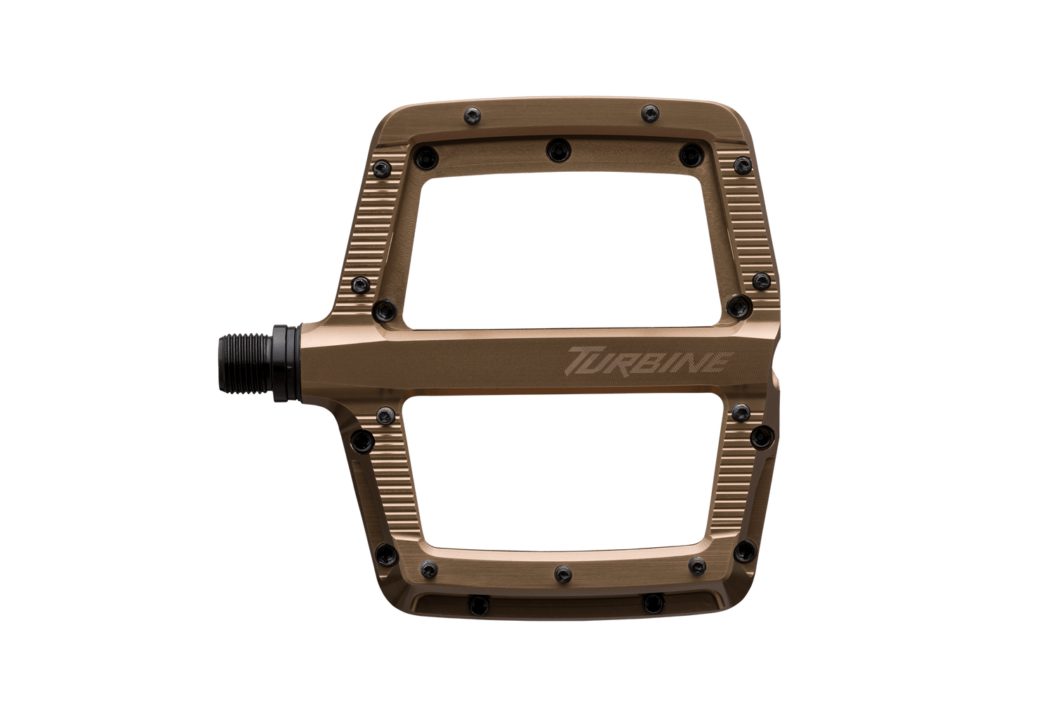 Race Face Turbine Pedals are built for ultimate grip, with concavity in all directions. Featuring an Asymmetric pedal platform, the Turbine Pedal is designed to fit your shoe perfectly, with no extra pedal hanging out to get caught on the trail. Race Face has eliminated the bearing bump, using a simple and well-proven architecture for maximum comfort and durability.